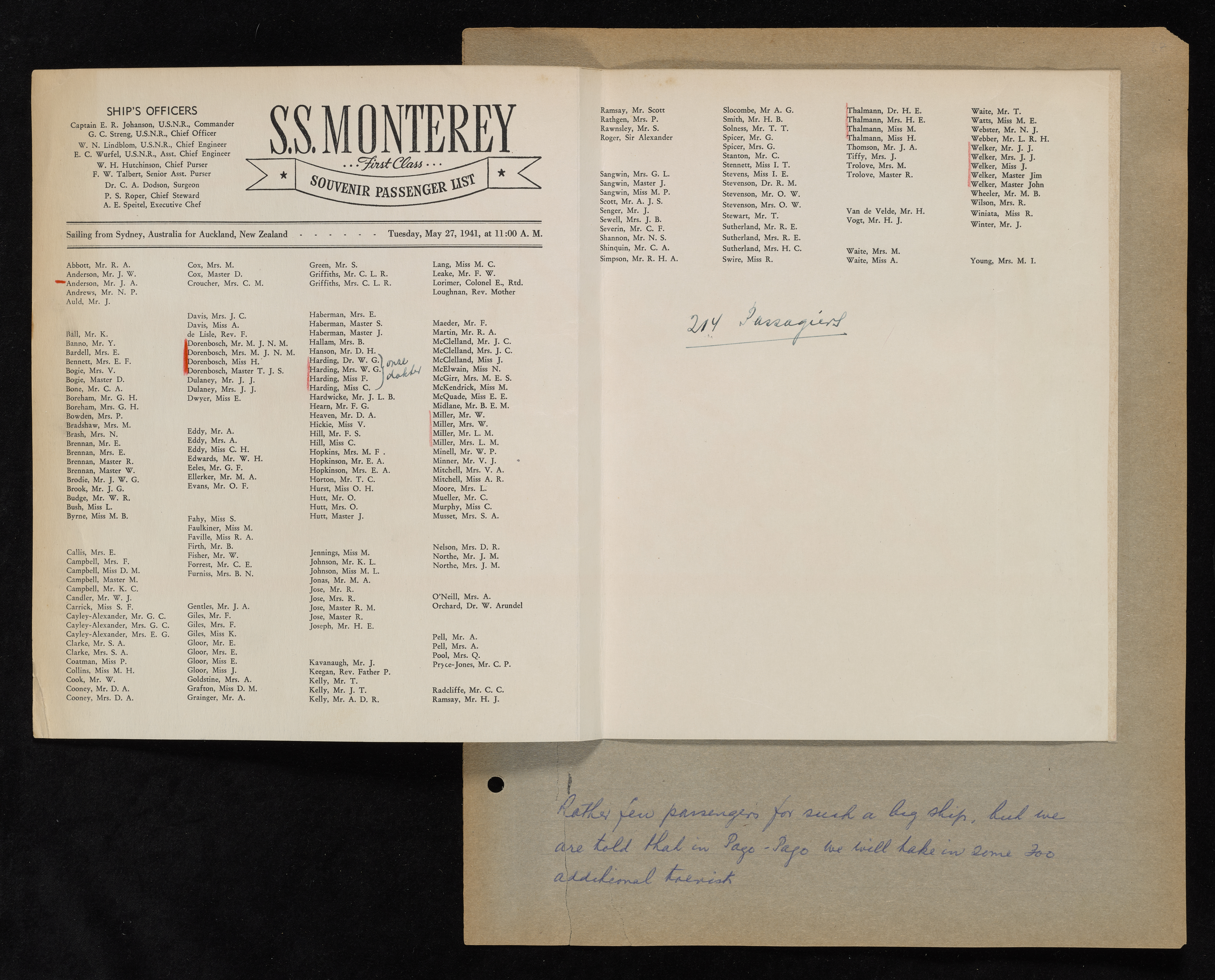 Suva, Fiji Pago Pago, Samoa Final passenger list (after Samoa)